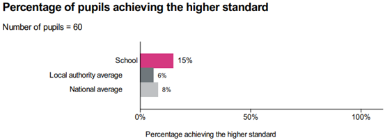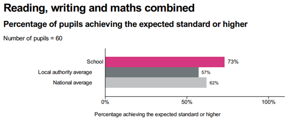 As a school, 75% of our pupils have achieved Reading, Writing and Maths combined, compared to 62% nationally. 15% of our pupils achieved the higher standard in Reading, Writing and Maths combined compared to 8% nationally.